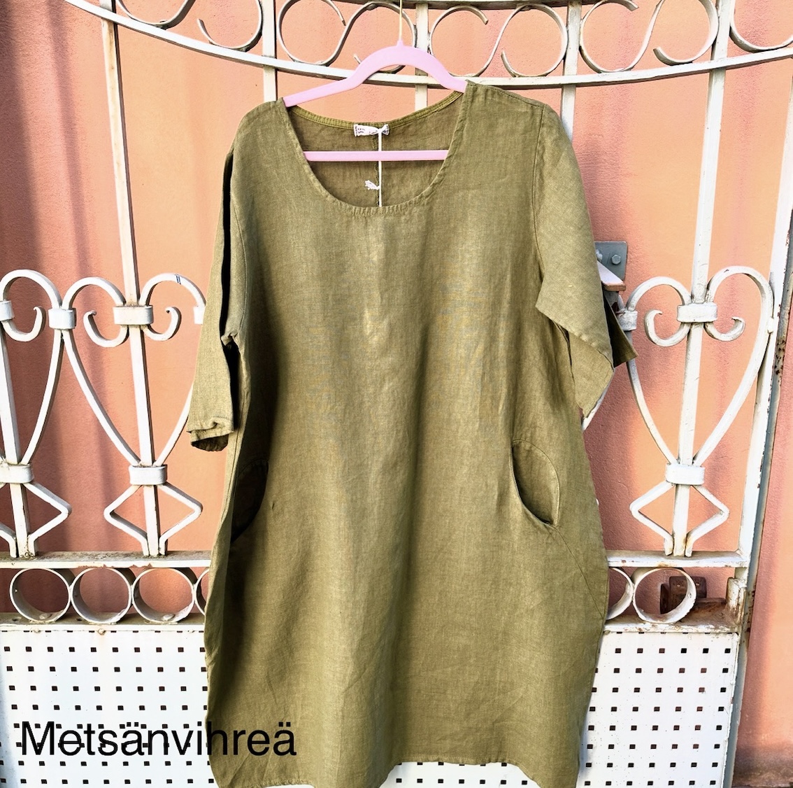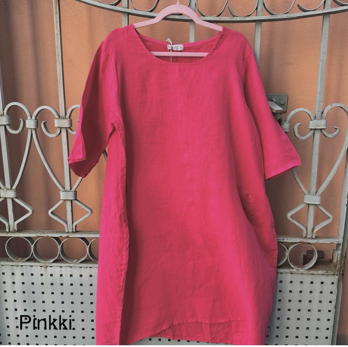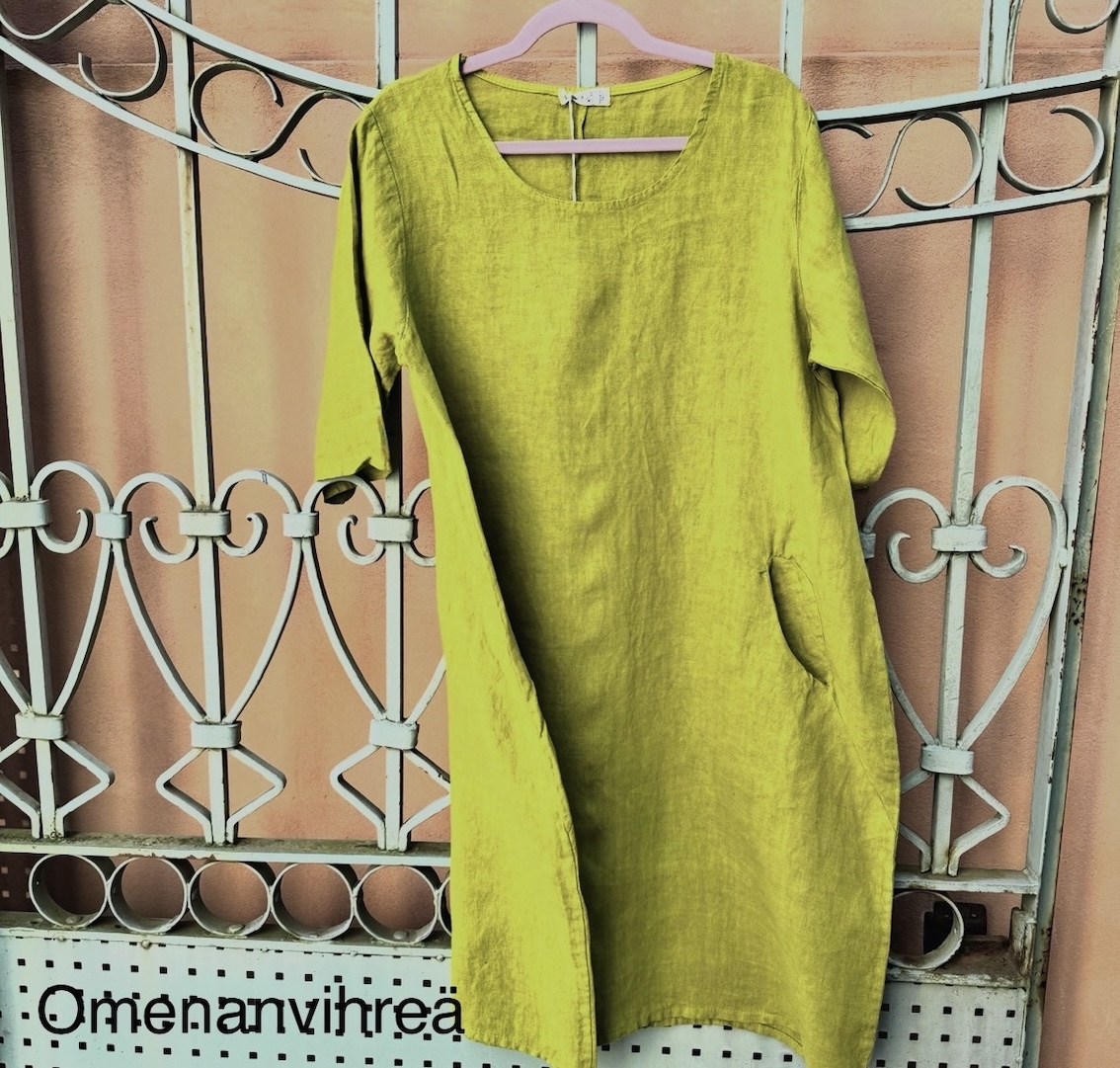 Jos haluat siistimmän lopputuloksen, mekko on helppo silittää pesun jälkeen. Moni kuitenkin arvostaa juuri sitä, että pellava näyttää hyvältä myös ilman silittämistä.