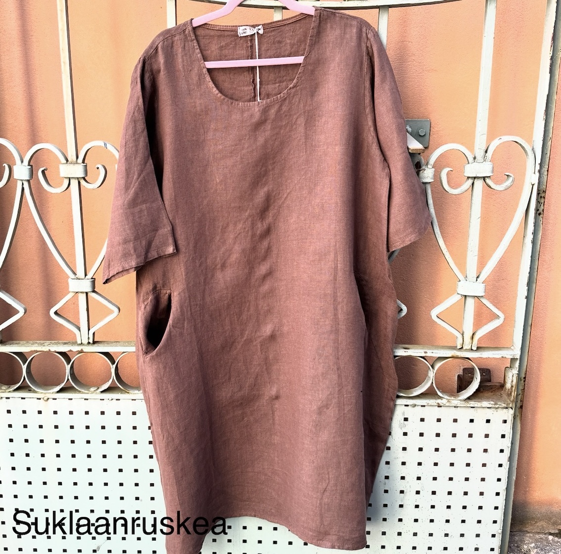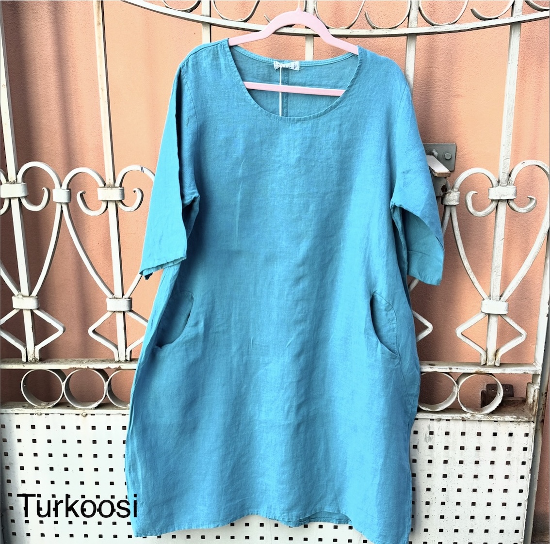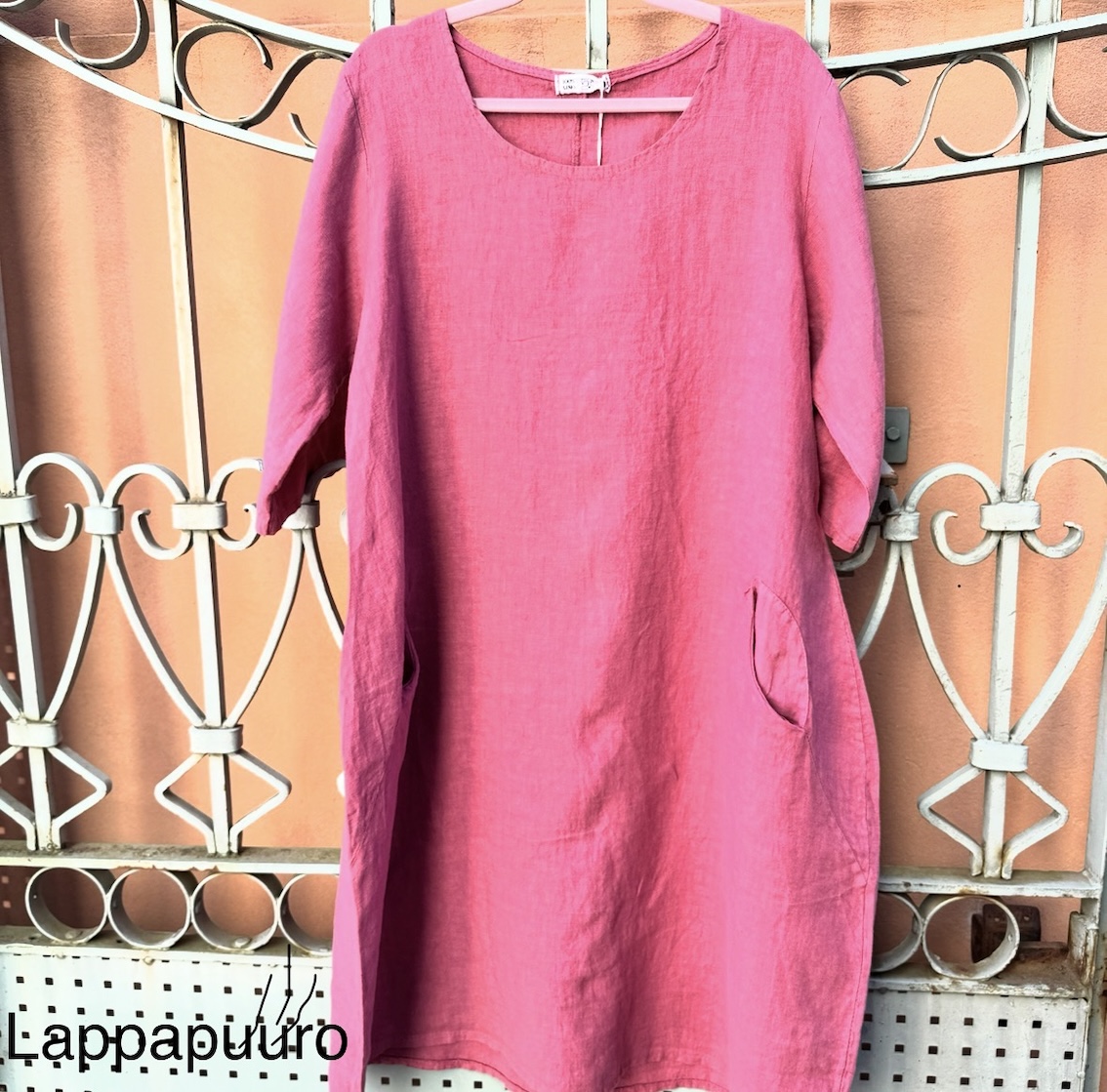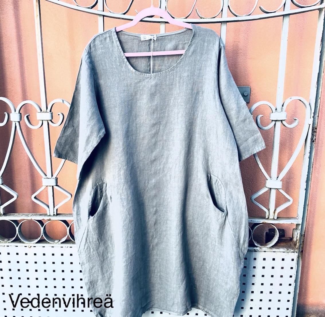 Jos haluat siistimmän lopputuloksen, mekko on helppo silittää pesun jälkeen. Moni kuitenkin arvostaa juuri sitä, että pellava näyttää hyvältä myös ilman silittämistä.
