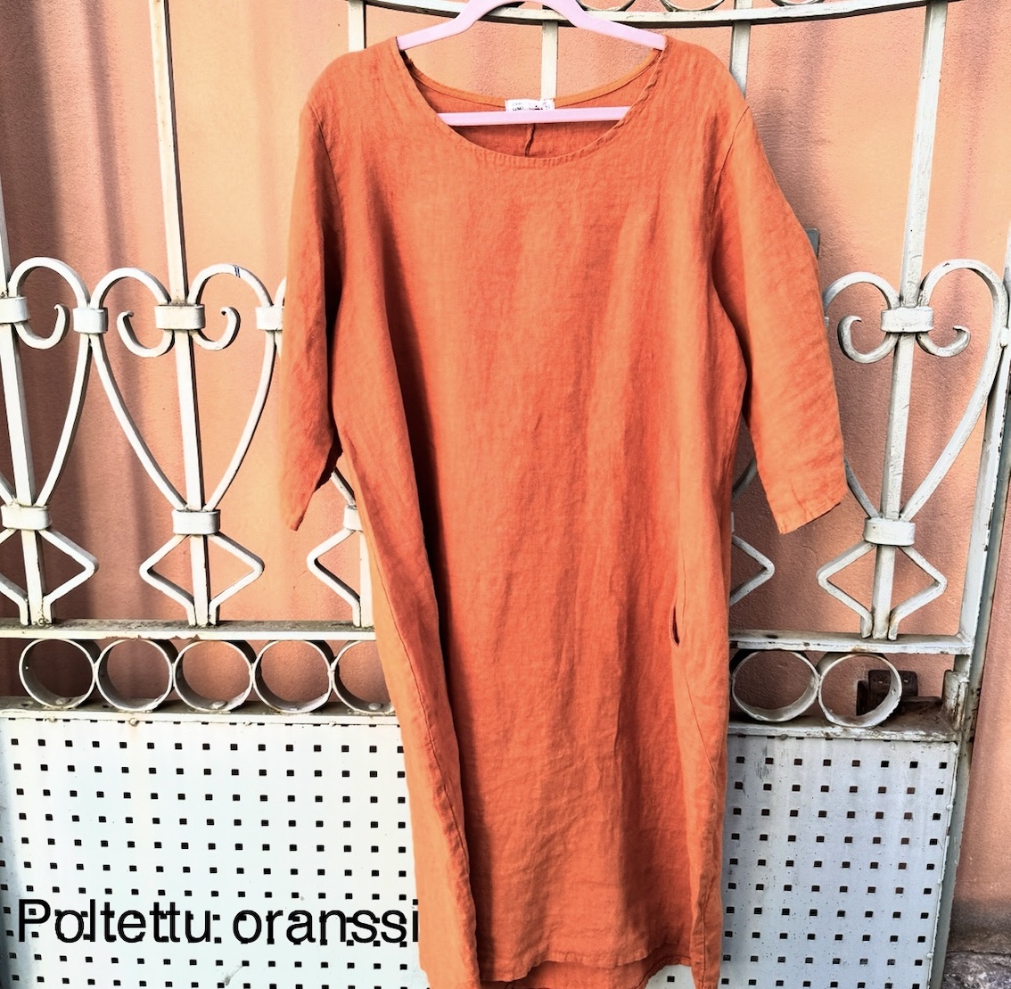 Pellavamekko näyttää hyvältä myös ilman silitystä, mutta halutessasi voit silittää sen pesun jälkeen saadaksesi siistimmän pinnan.