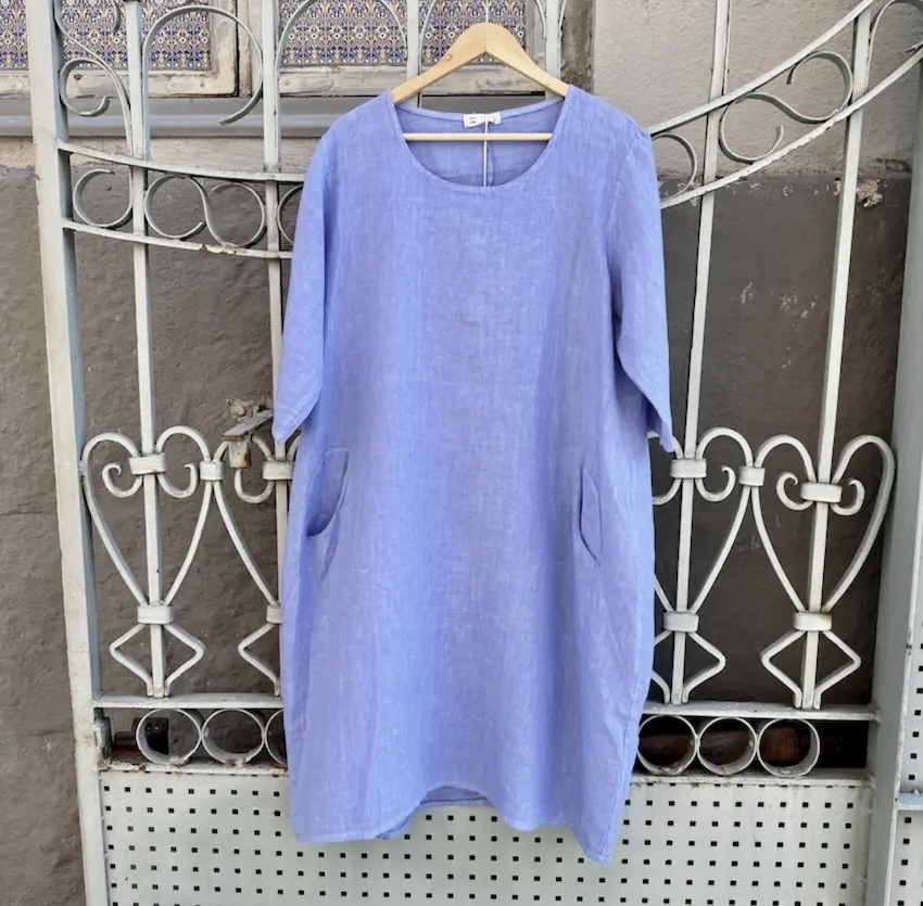 Pellavamekko Aino on suunniteltu sopimaan mahdollisimman monelle vartalotyypille. Sen väljä, suoralinjainen malli ei kiristä eikä korosta liikaa, vaan laskeutuu kauniisti ja antaa tilaa liikkua. Tämä tekee siitä erityisen mukavan käyttää pitkien päivien aikana.
