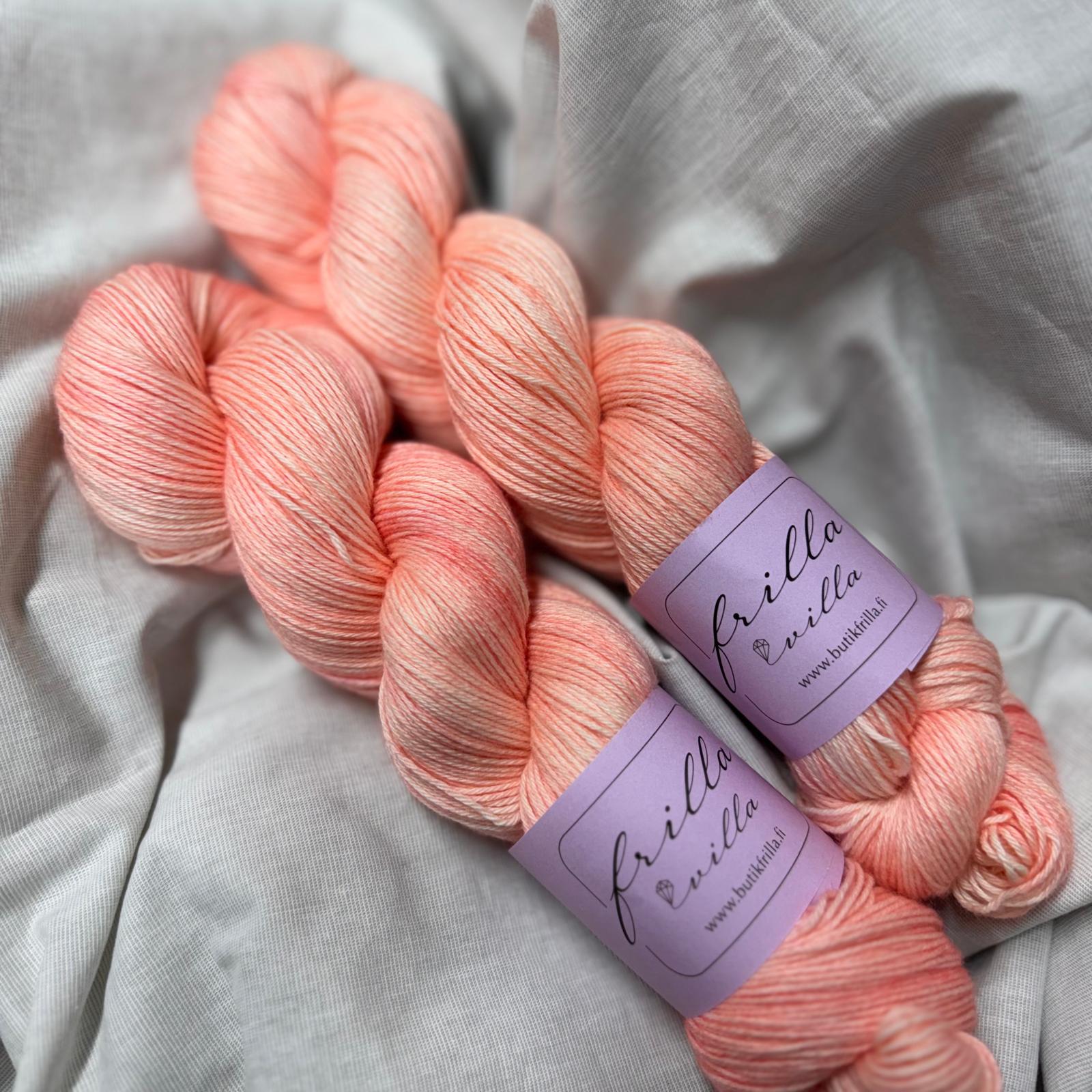Frillavilla Pulu puuvillamerino on käsinvärjätty kesälanka, jossa yhdistyvät pehmeys, ryhti ja kaunis, utuisen valoisa värimaailma. Tämä lanka on suunniteltu erityisesti kevyisiin kesäneuleisiin – sellaisiin, joita käytetään suoraan ihoa vasten ja joihin halutaan sekä mukavuutta että hengittävyyttä.