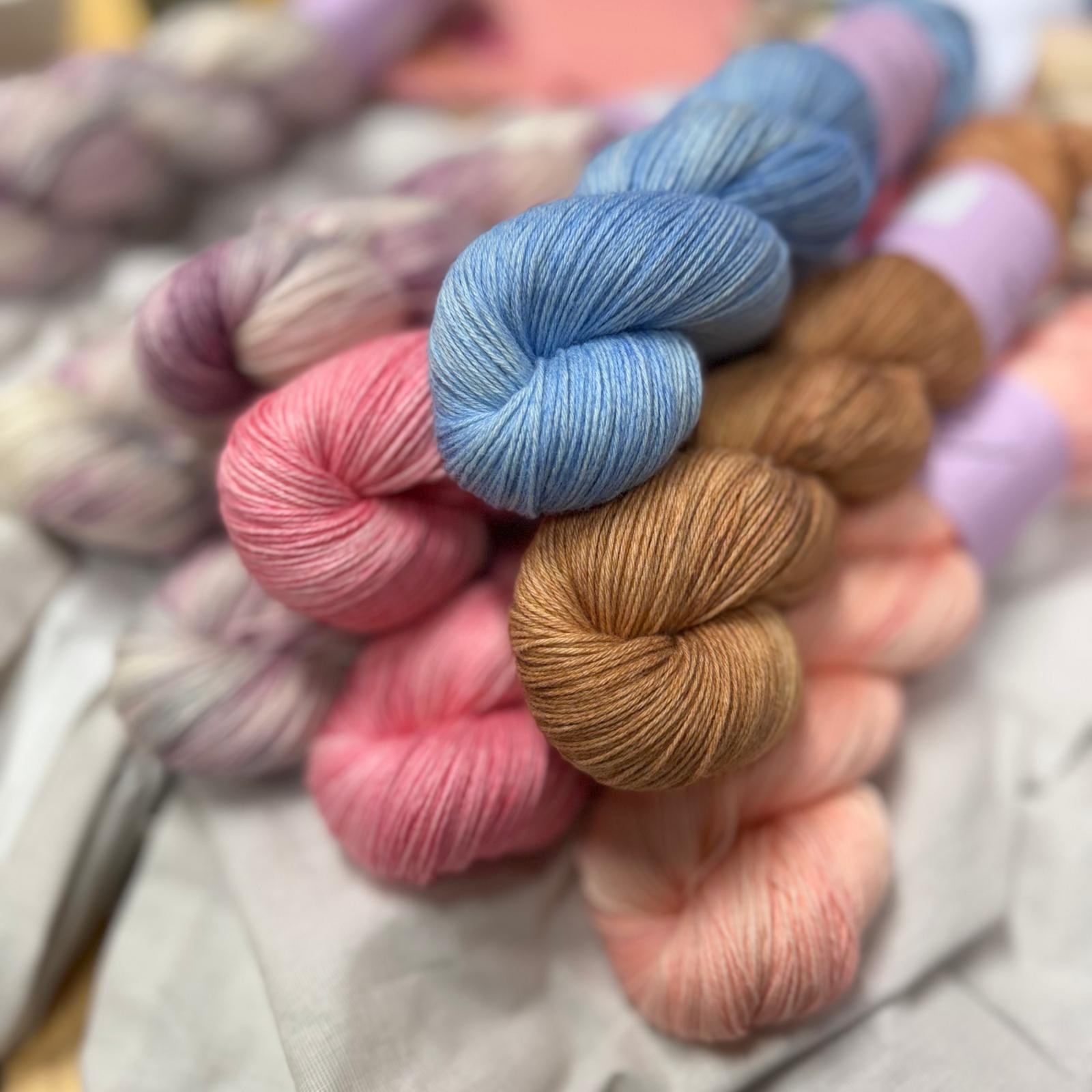 - 300 g suurempiin lankatarpeisiin valitse langat aina samasta värjäyerästä (suuremmat värierät saatavilla myös tilauksesta).