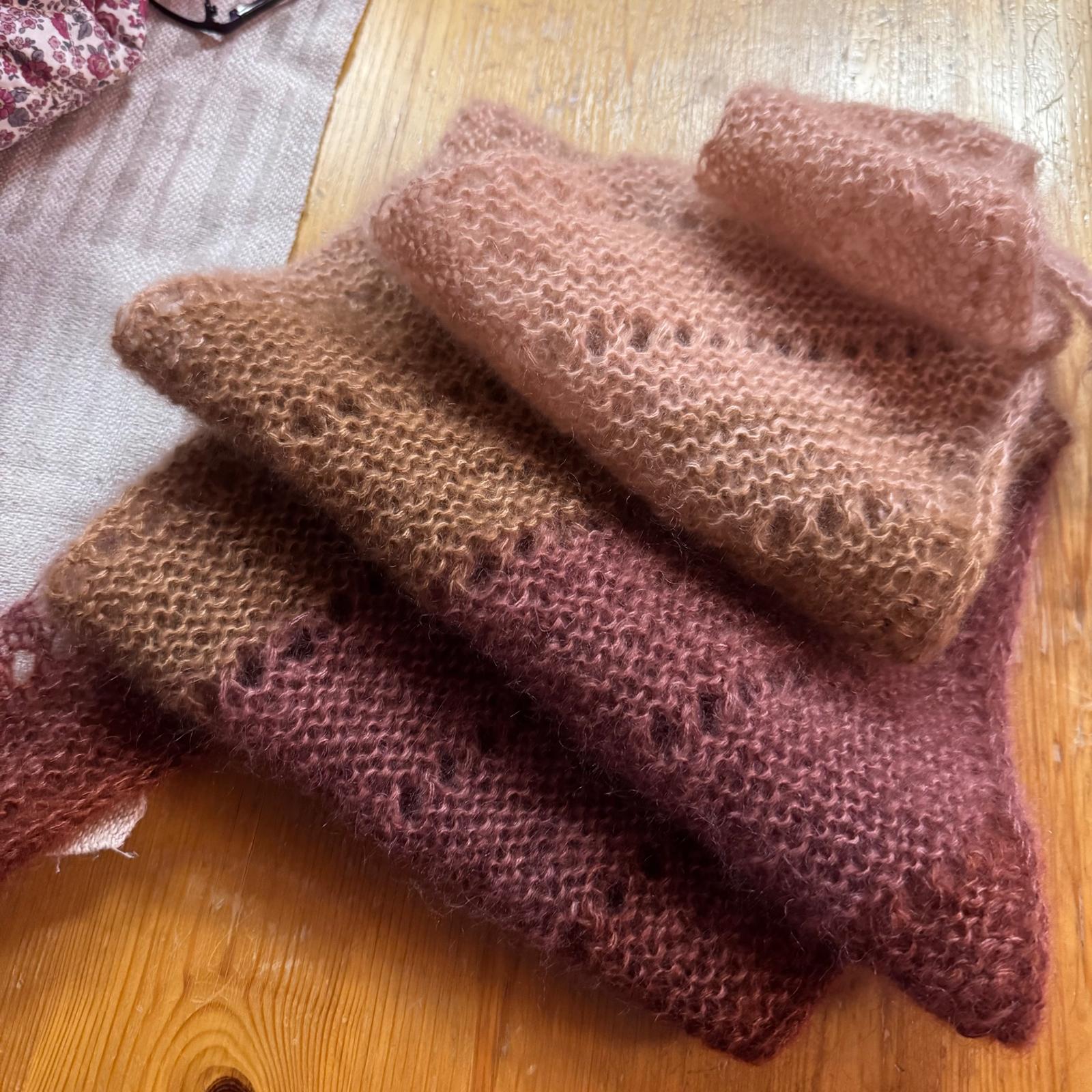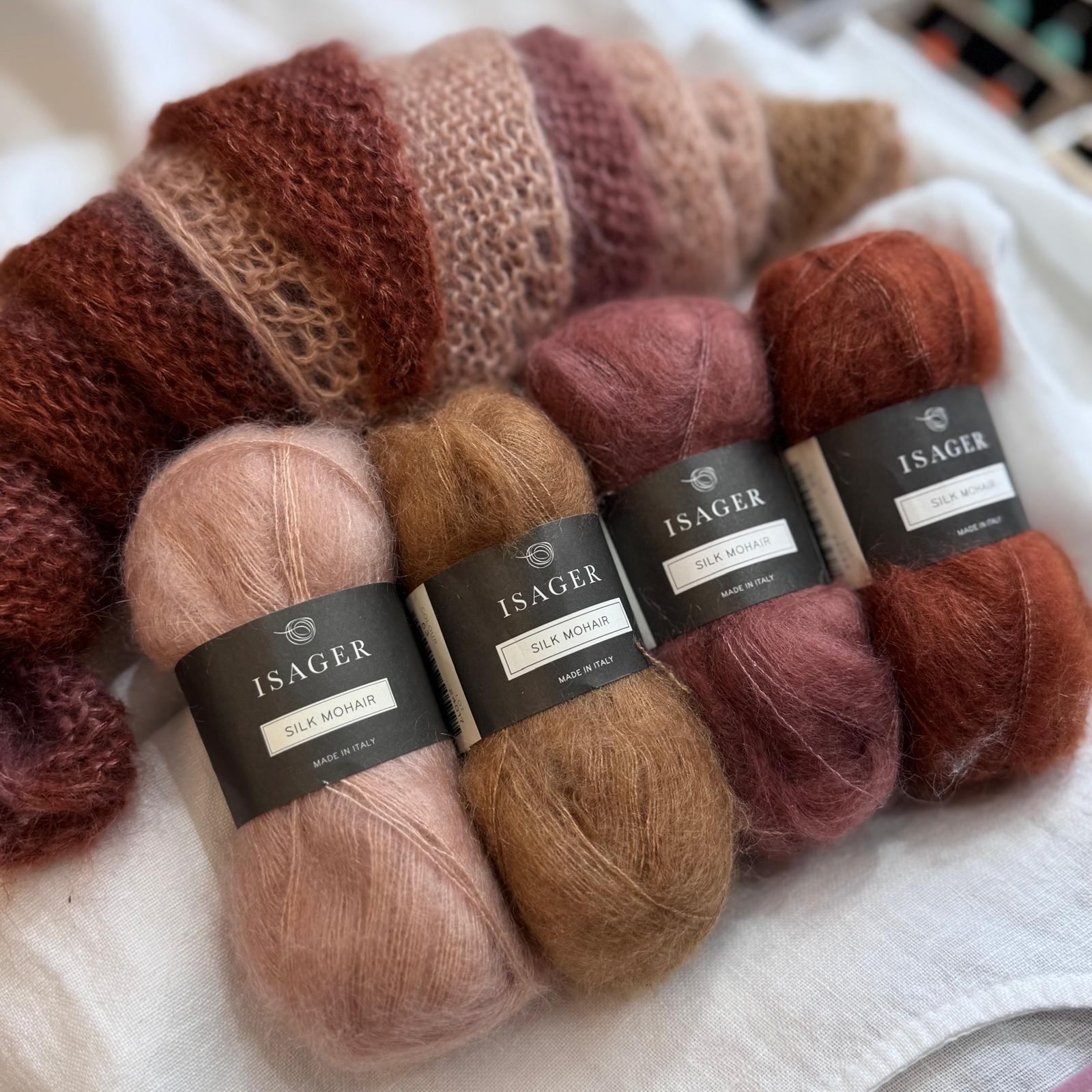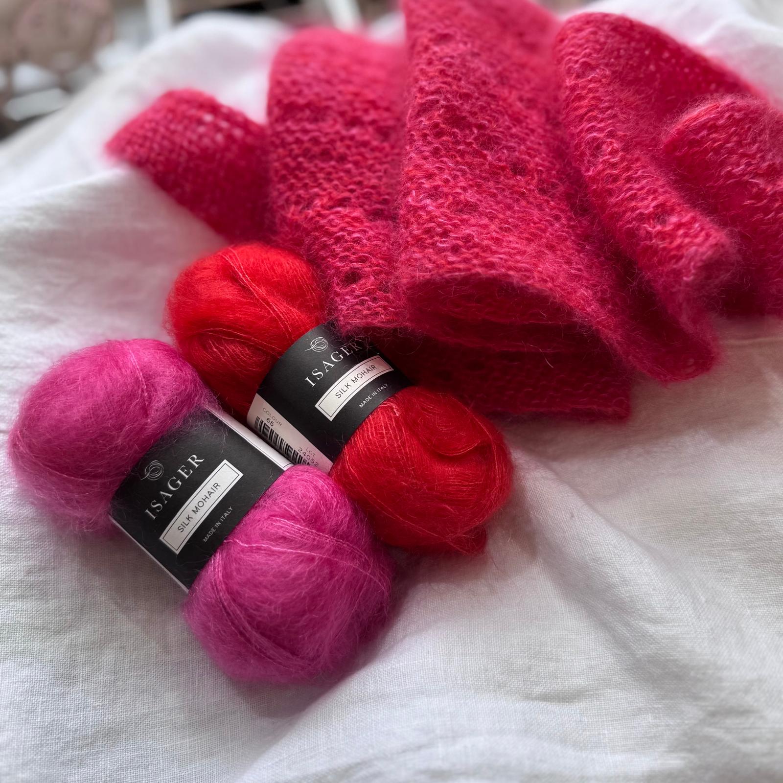 Hissukkahuivi on suunniteltu erityisesti pörröisille ja kevyille langoille, kuten kaksinkertaiselle silkkimohairille tai muulle vastaavalle ylelliselle kuidulle. Lopputulos on: