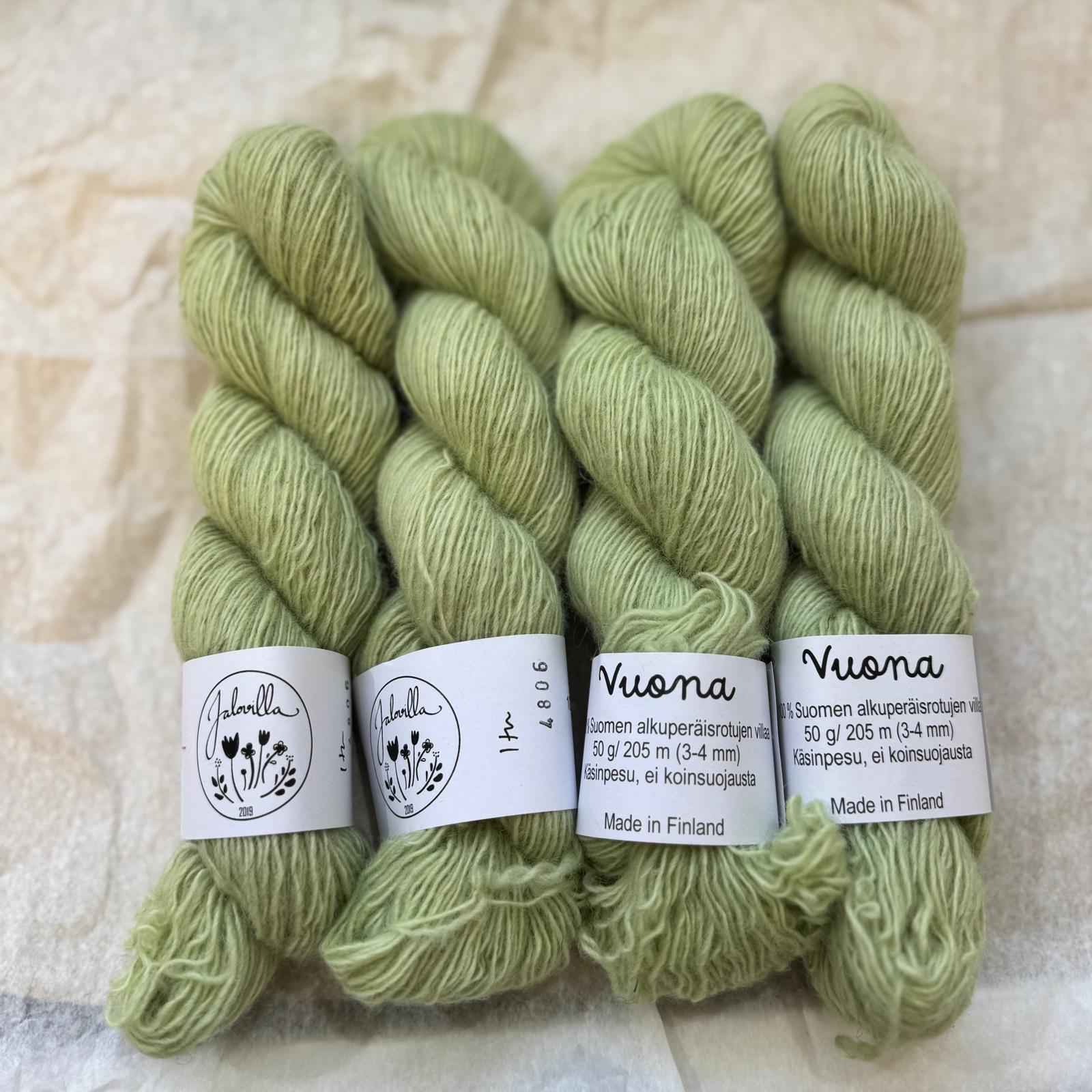 Jalovilla Vuona villalanka valmistetaan 100 % kotimaisesta alkuperäisrotujen lampaanvillasta, joka on tunnettu kestävyydestään, lämmöneristyskyvystään ja hengittävyydestään. Tämä suomalainen villalanka edustaa aitoa, ekologista ja perinteikästä käsityötä. Villan alkuperä ja käsittely näkyvät lopputuloksessa: Vuona-neuleet mukautuvat käyttäjälleen ajan myötä, saaden persoonallisen ilmeen ja pehmeyden.