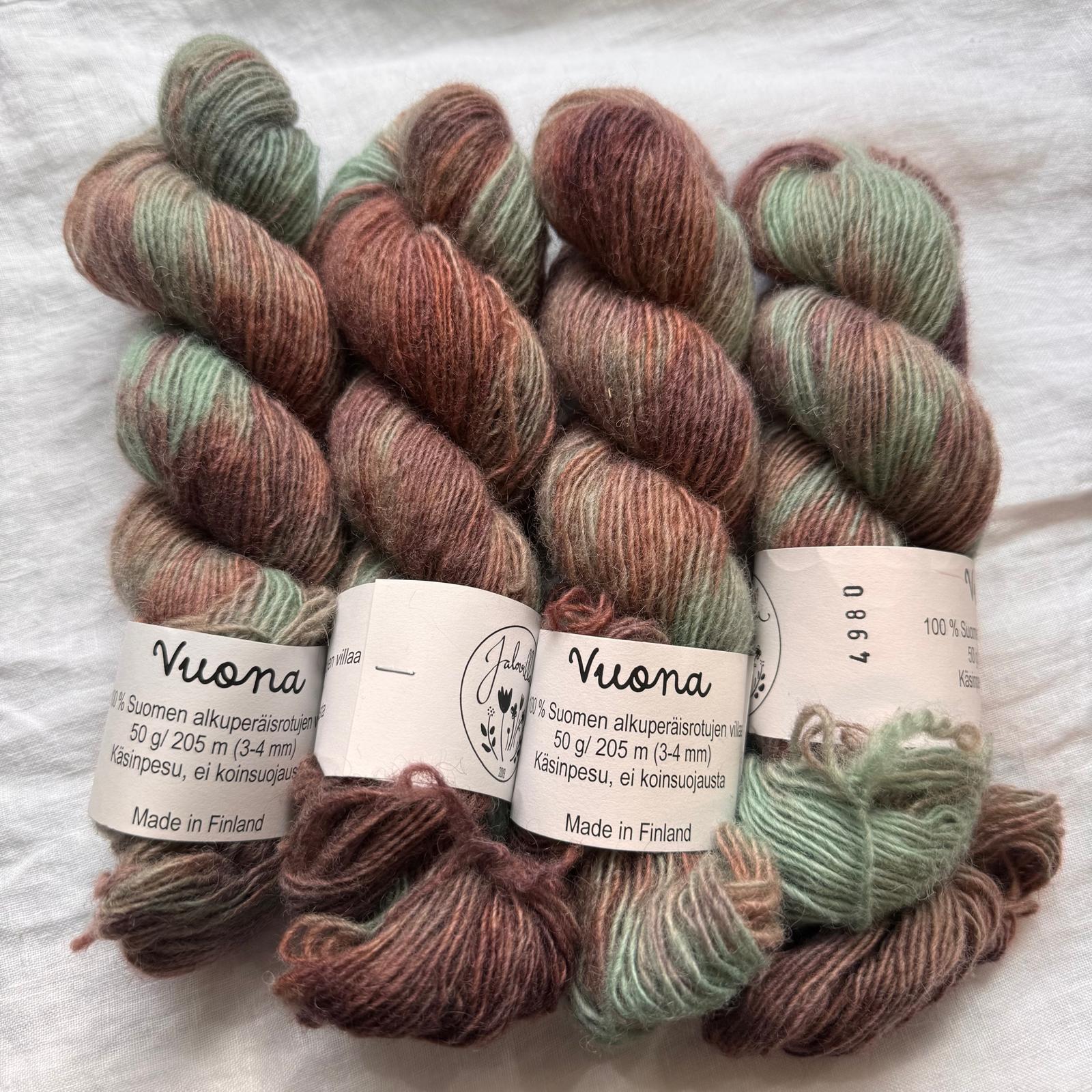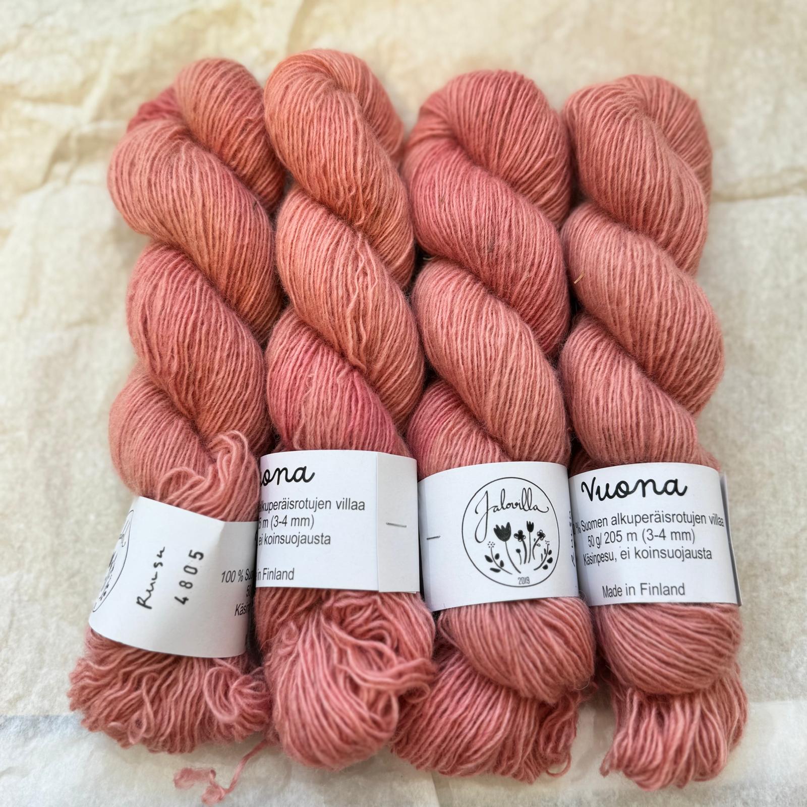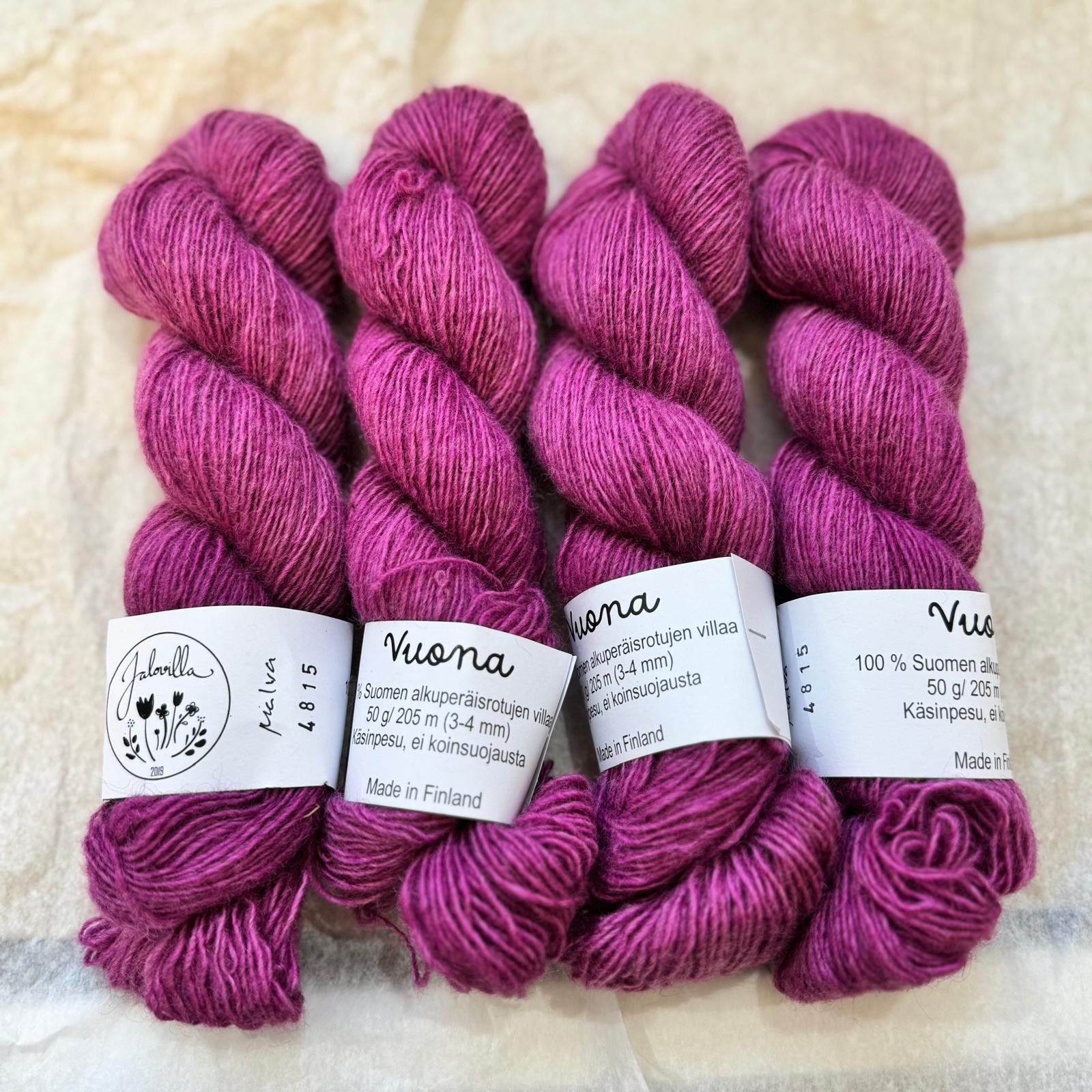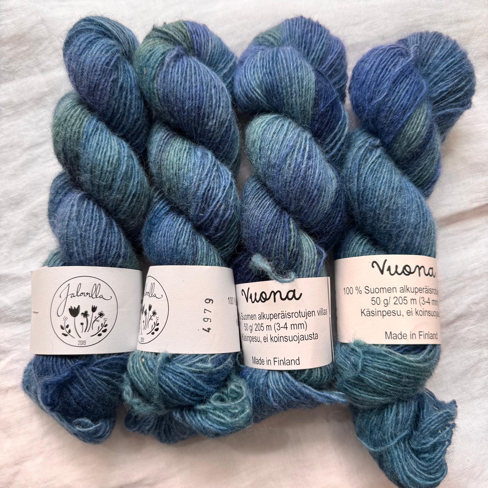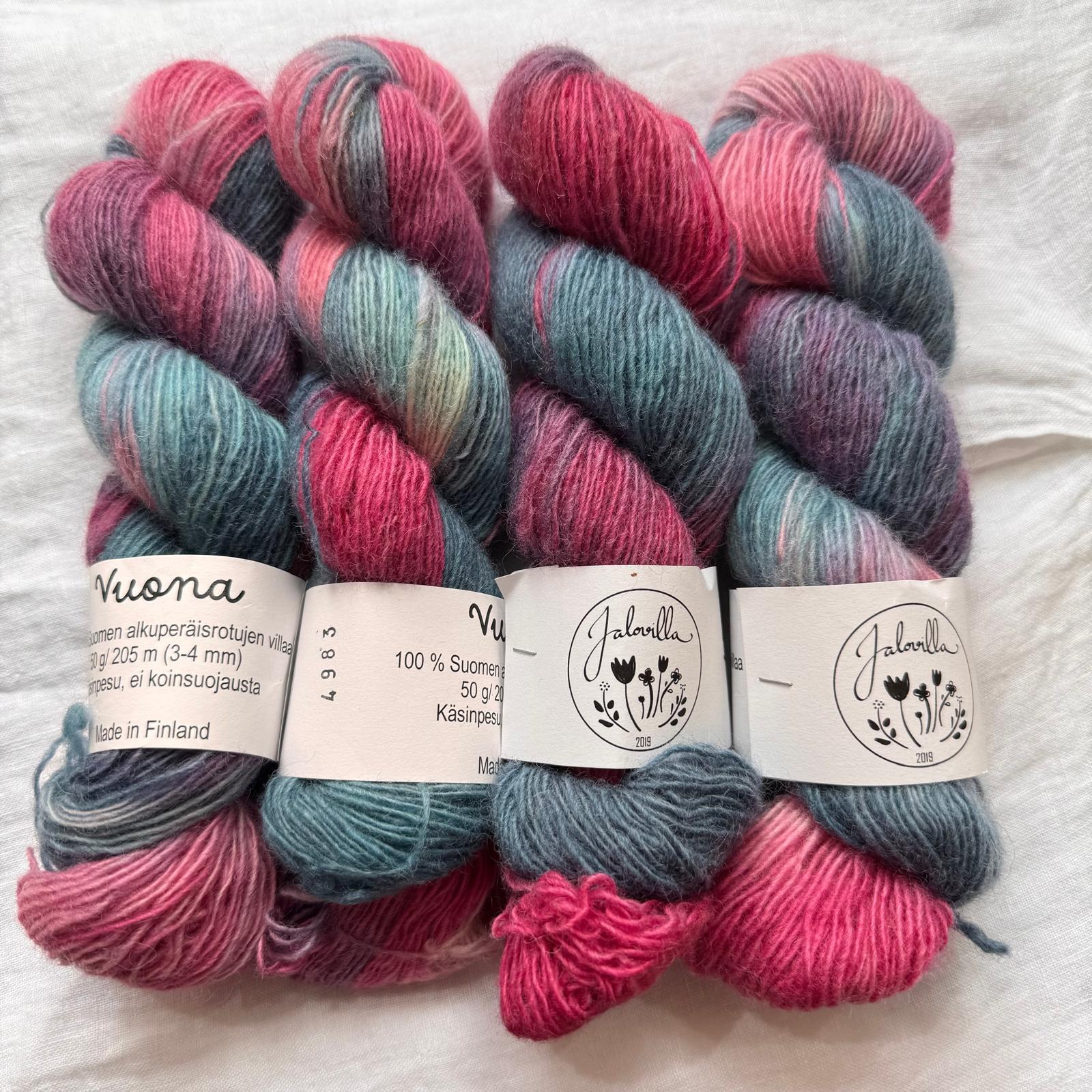 Jalovilla Vuona on käsinvärjätty kotimainen villalanka