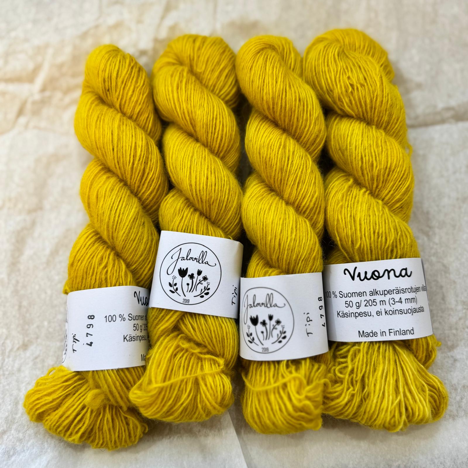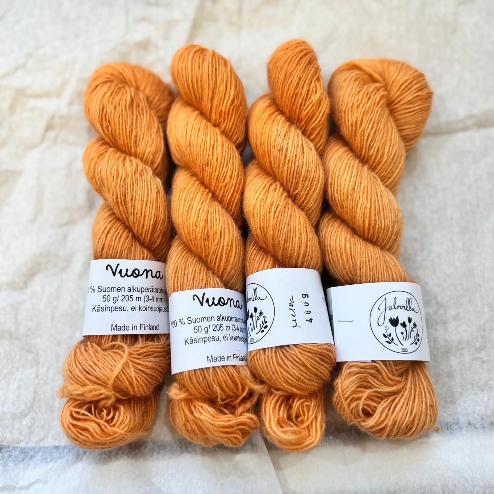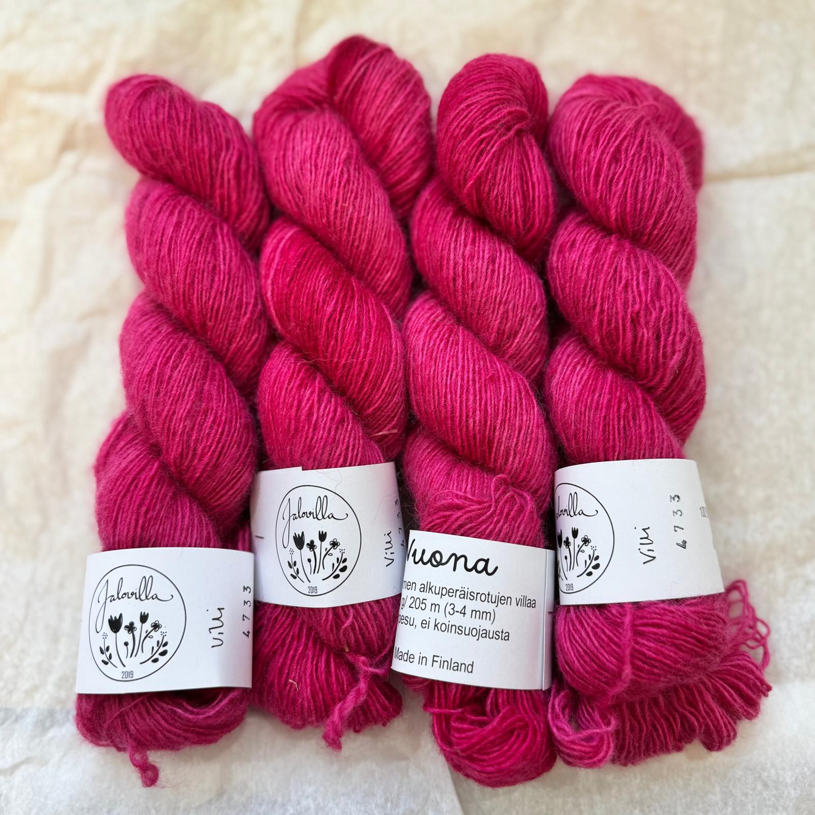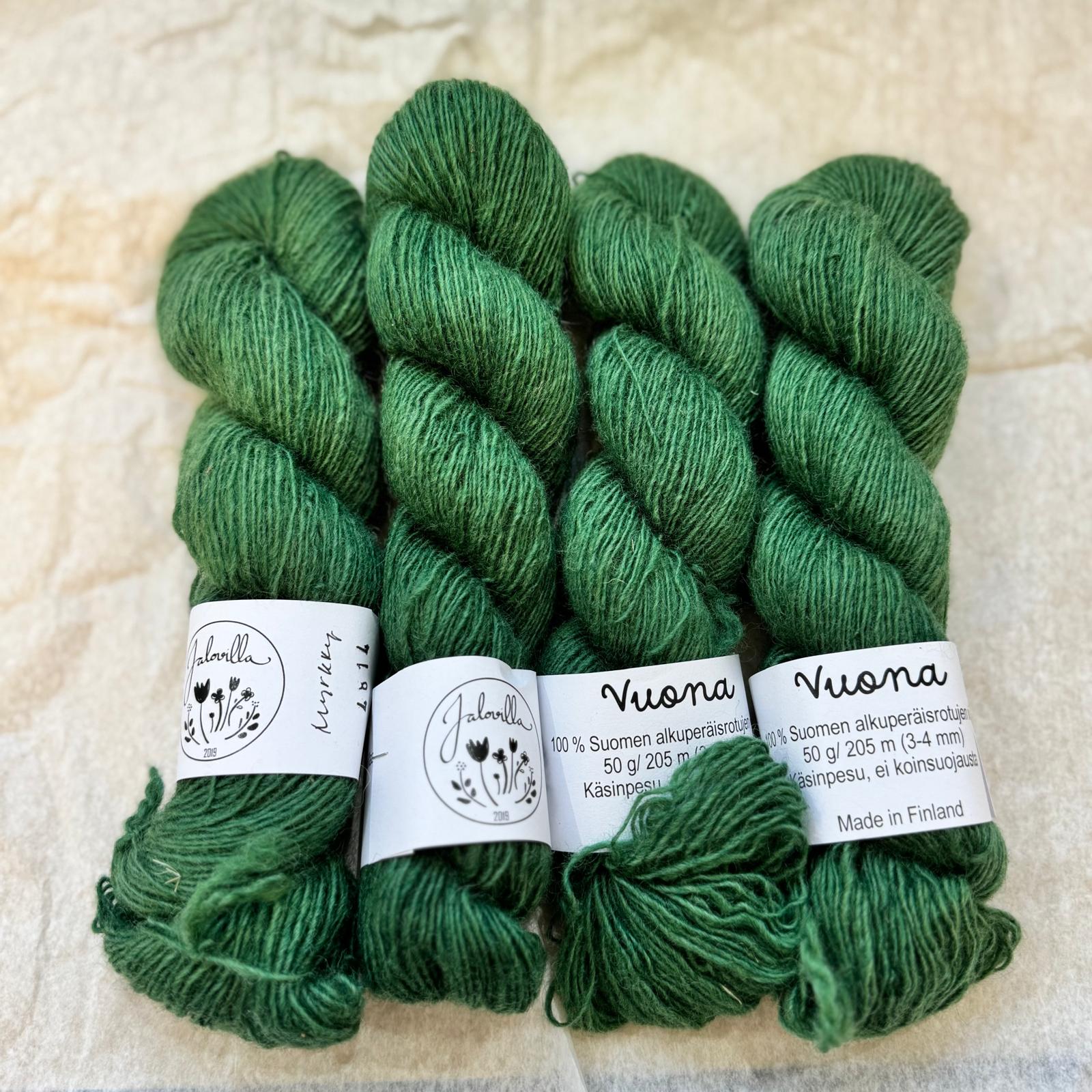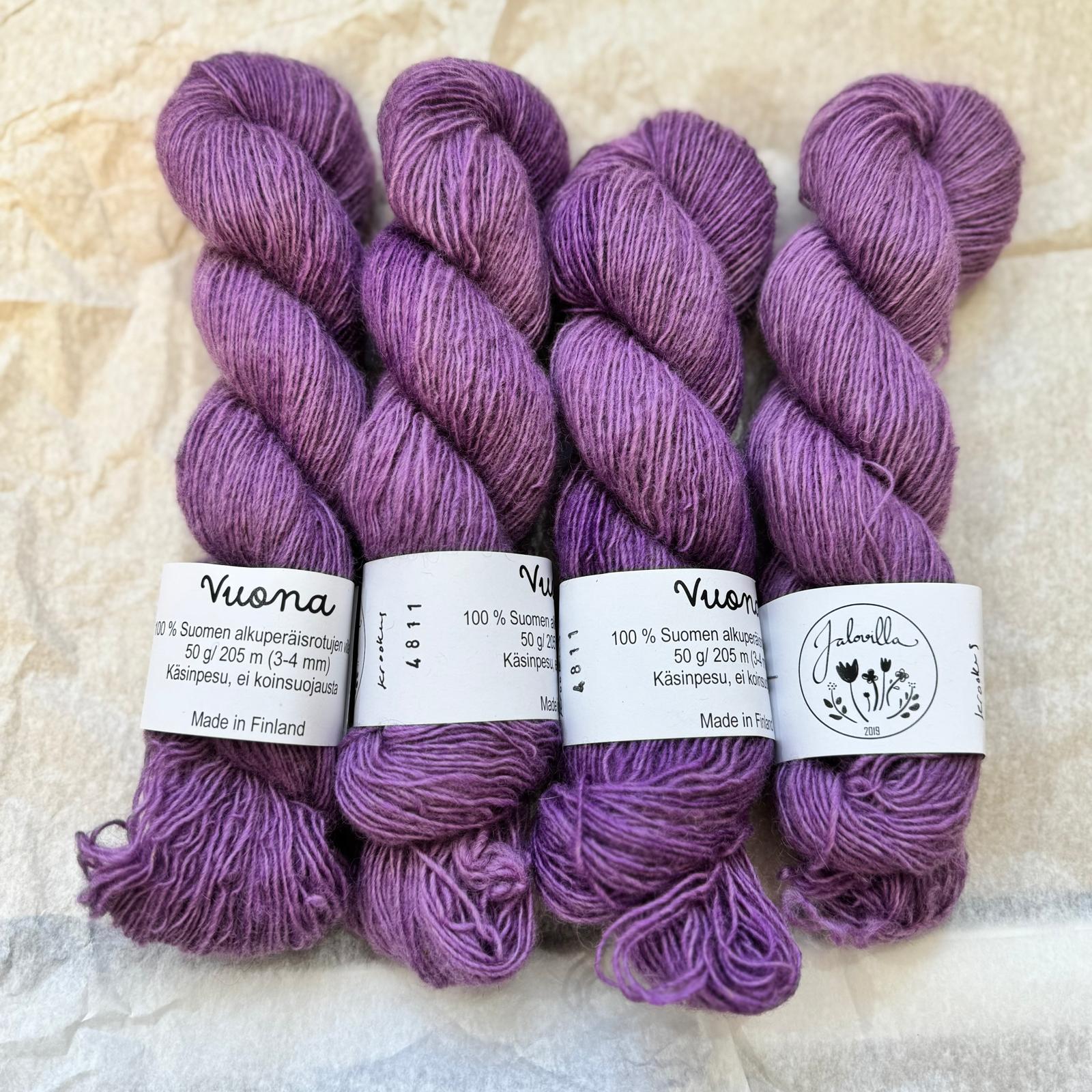 Jalovilla Vuona on käsinvärjätty kotimainen villalanka