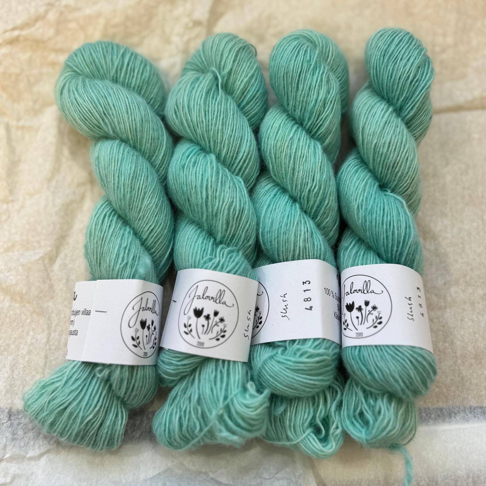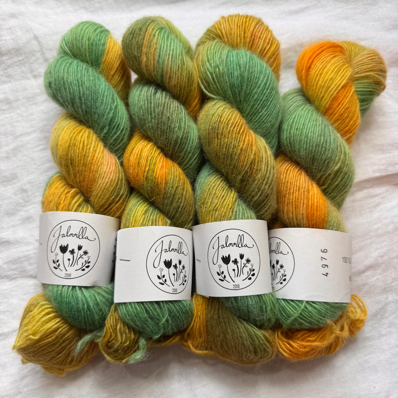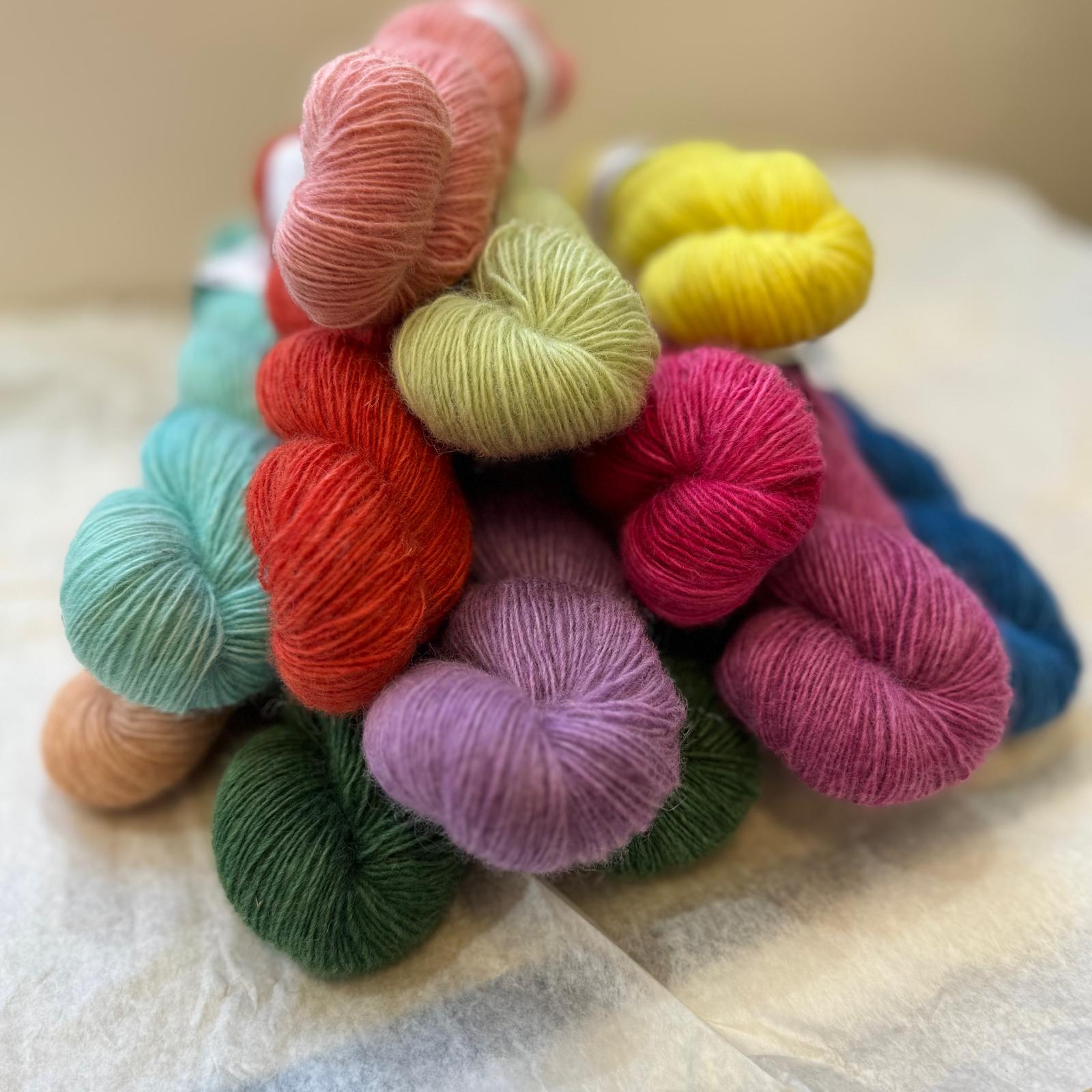 Hoito-ohje: pese valmis neule käsin viileässä, noin 30–40 °C vedessä. Ensimmäisissä pesukerroissa langasta saattaa irrota hieman ylimääräistä väriä – tämä on normaalia käsinvärjätylle langalle.