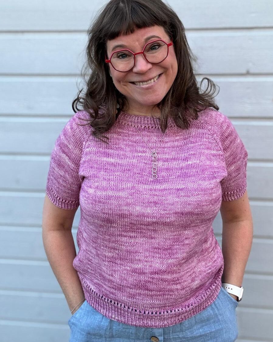 KESÄPAITA on ohje, johon on helppo tarttua. Se sopii sekä kokeneemmalle neulojalle että aloittelijalle, joka haluaa oppia lisää. Ylhäältä alas neulottava rakenne tekee sovittamisesta ja istuvuuden säätämisestä helppoa.