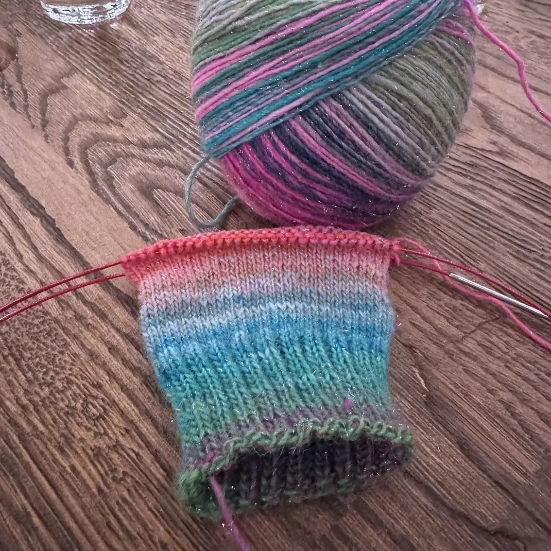 Tämä ei siis ole “vain kaunis lanka”, vaan täysin toimiva sukkalanka, jossa on mukana pieni lisäylellisyys.