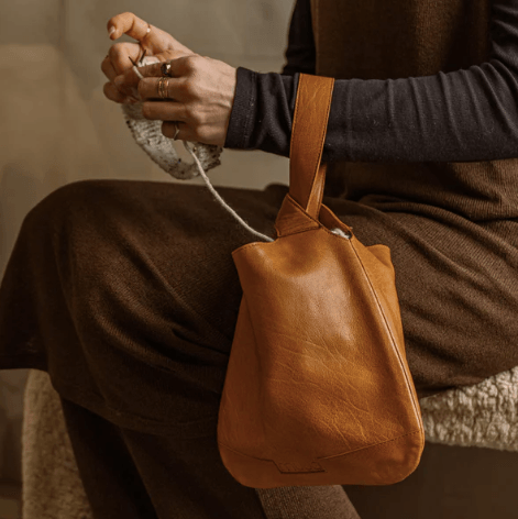 Muud Dzana laukku – elegantti nahkainen käsilaukku ja projektipussi neulojalle