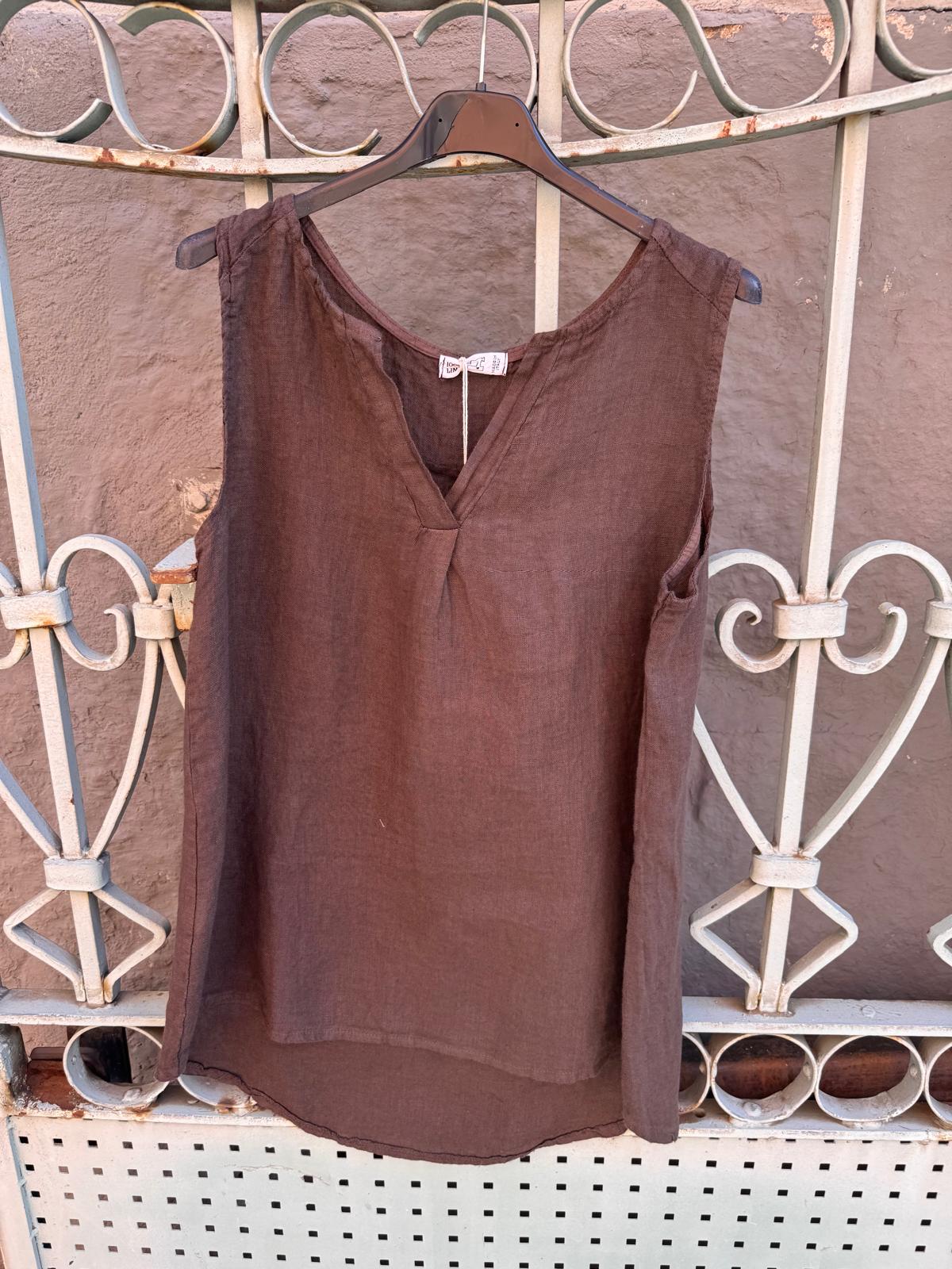 Tiina pellavatoppi on valmistettu 100 % korkealaatuisesta pellavasta, joka tekee siitä erityisen miellyttävän käyttää lämpimällä säällä. Pellava on luonnostaan hengittävä ja viilentävä materiaali, joka siirtää kosteutta pois iholta ja kuivuu nopeasti. Se tuo mukavuutta hellepäiviin, mutta on riittävän ryhdikäs ja huoliteltu myös virallisempiin tilanteisiin.