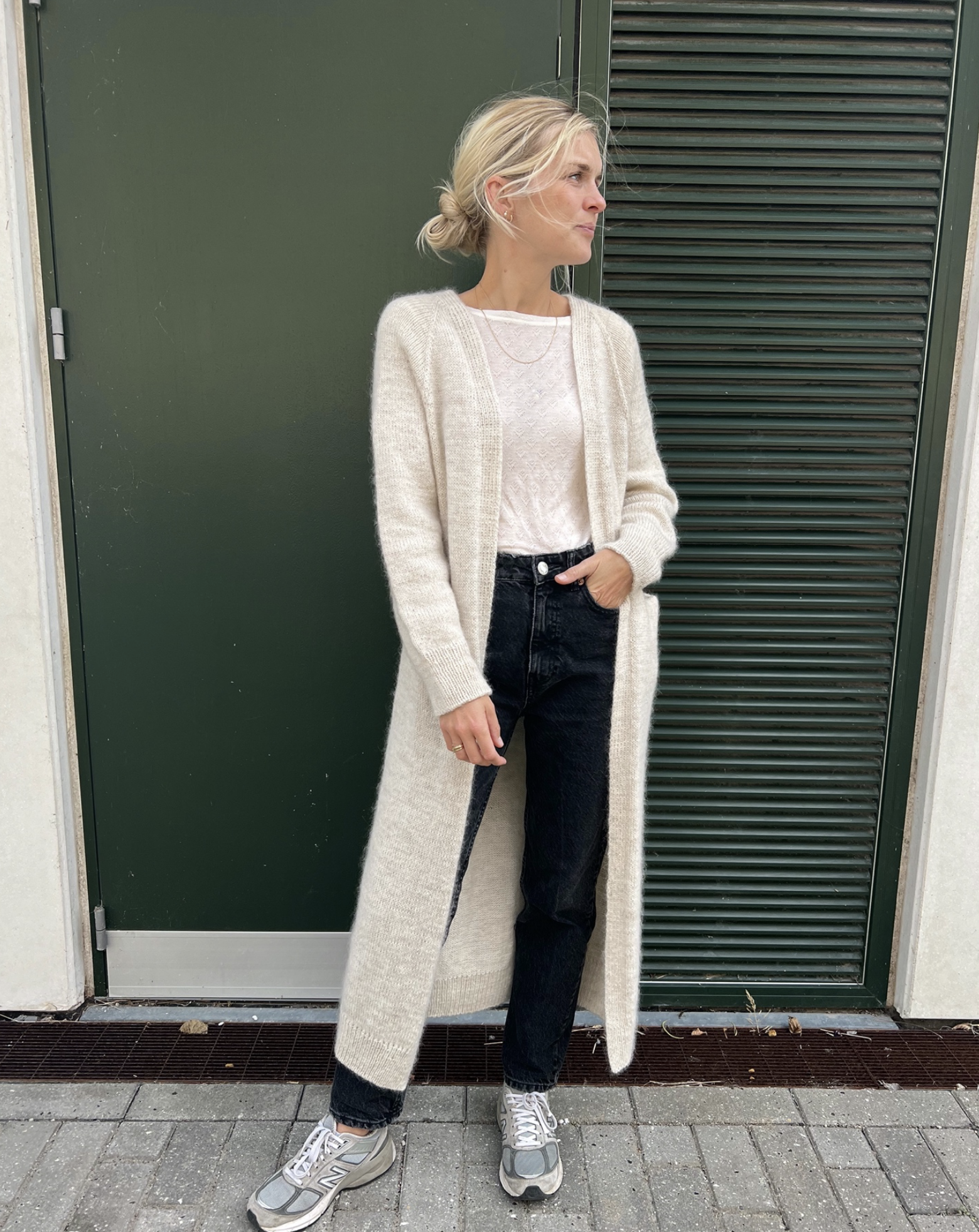 PetiteKnit No Frills Cardigan on neuletakki, jossa ei ole mitään ylimääräistä. Sen muoto on selkeä, linjat puhtaat ja kokonaisuus tasapainoinen. Juuri tämä tekee siitä niin monikäyttöisen: se ei kilpaile muiden vaatteiden kanssa, vaan täydentää asukokonaisuuden.