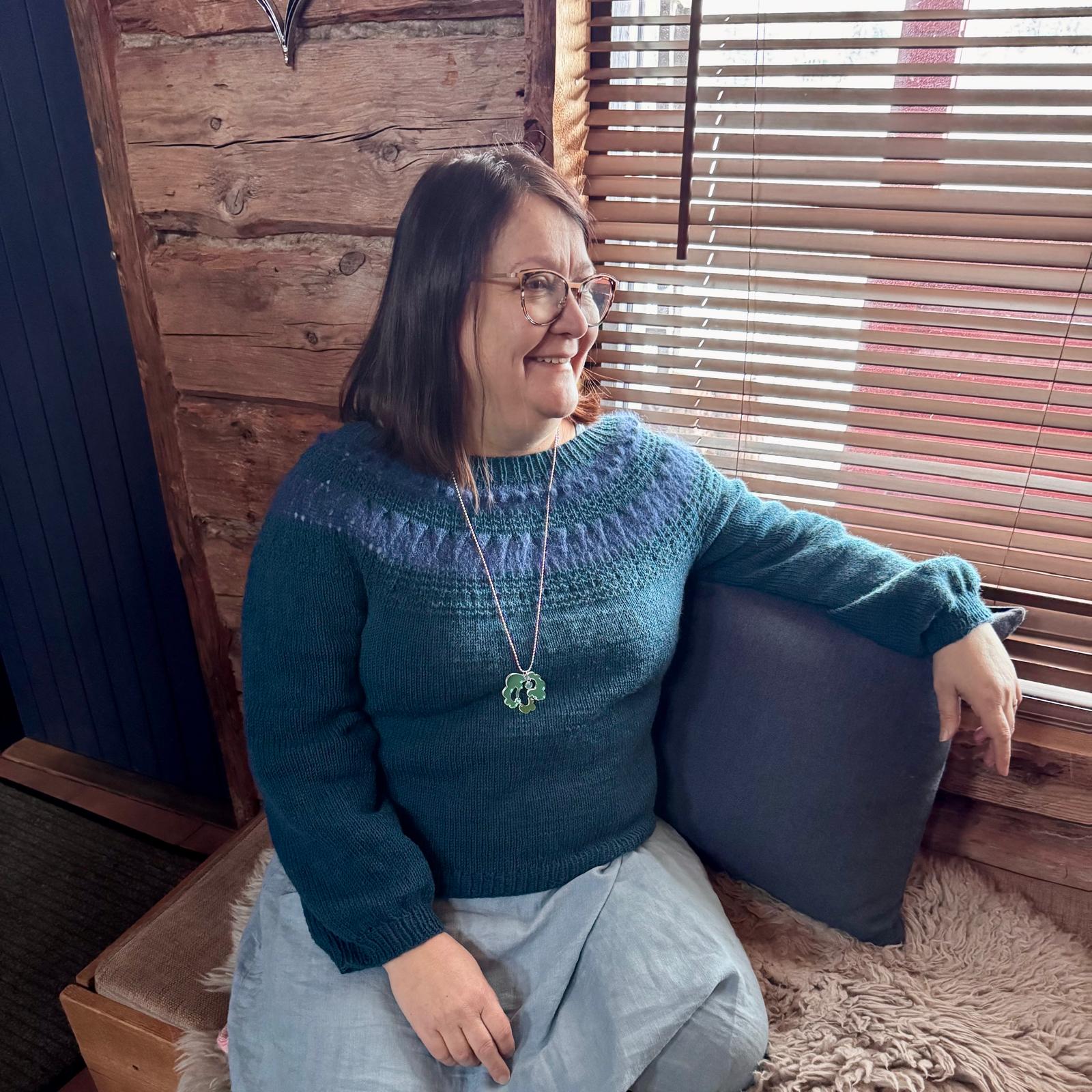 Jos haluat Villattareen yksilöllisen ilmeen, voit käyttää myös käsinvärjättyjä lankoja. Butik frillan valikoimasta löydät esimerkiksi Sulo Woolin ja Frillavillan sävyjä, jotka sopivat tähän kaarrokeneuleeseen erinomaisesti ja tuovat neuleeseen lisää syvyyttä ja elävyyttä.